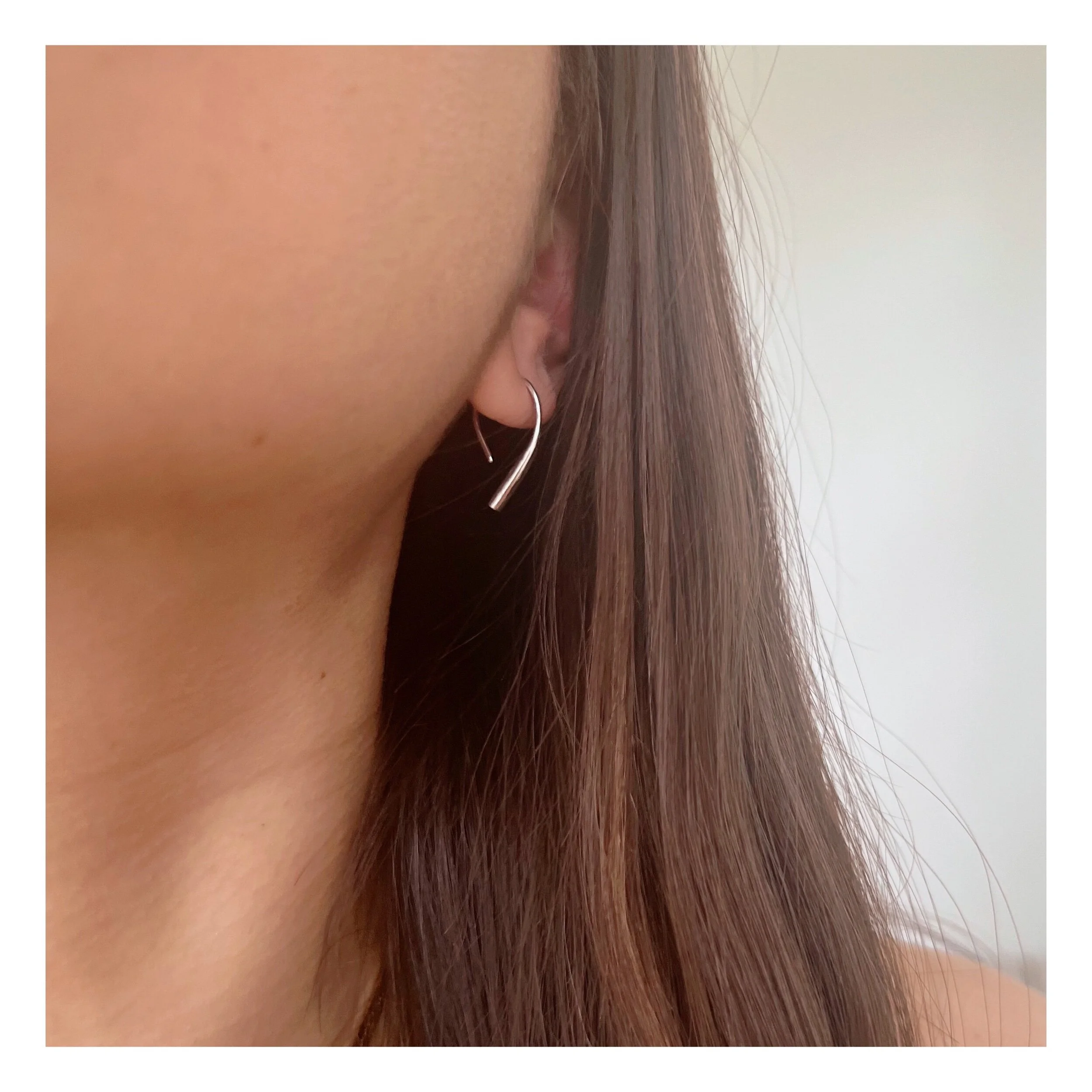 Shop › Hukki Earrings Image 1 of 2 Image 2 of 2 Hukki Earrings from $85.00 Delicate hook earrings. Approx 1 inch. Material: Silver Single Silver 10K Single Get notified by email when this product is in stock. Sign up to receive news and updates. Quantity: Add To Cart Added! Delicate hook earrings. Approx 1 inch.