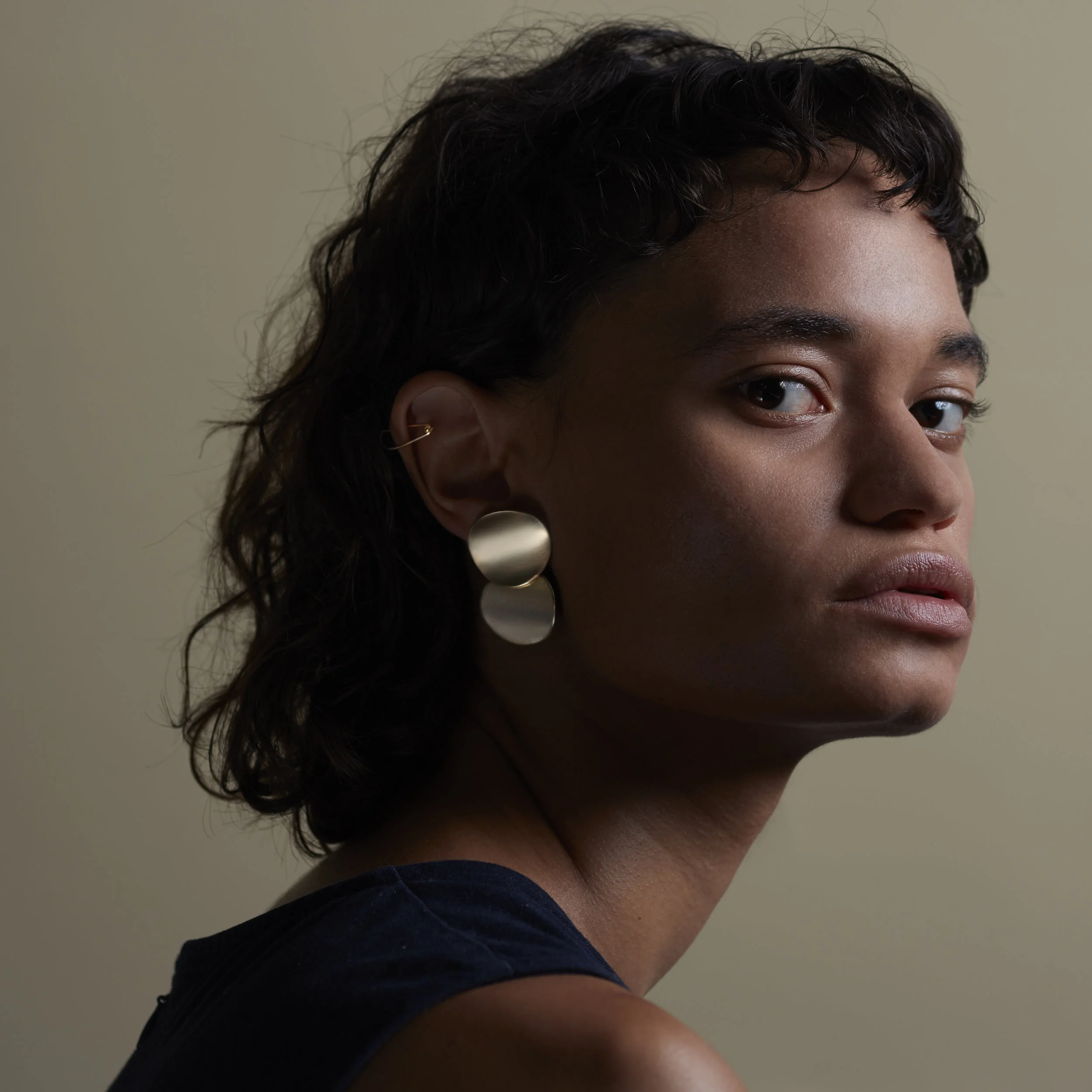 Shop › Kerros Earring Image 1 of 3 Image 2 of 3 Image 3 of 3 Kerros Earring from $425.00 Layered Disc Earrings, approximately 1x2" inch. Delivery Type: In-Stock Pre-Order (ships 3-5 weeks) Metal: Sterling Silver Gold Vermeil Get notified by email when this product is in stock. Sign up to receive news and updates. Add To Cart Added! Layered Disc Earrings, approximately 1x2" inch.