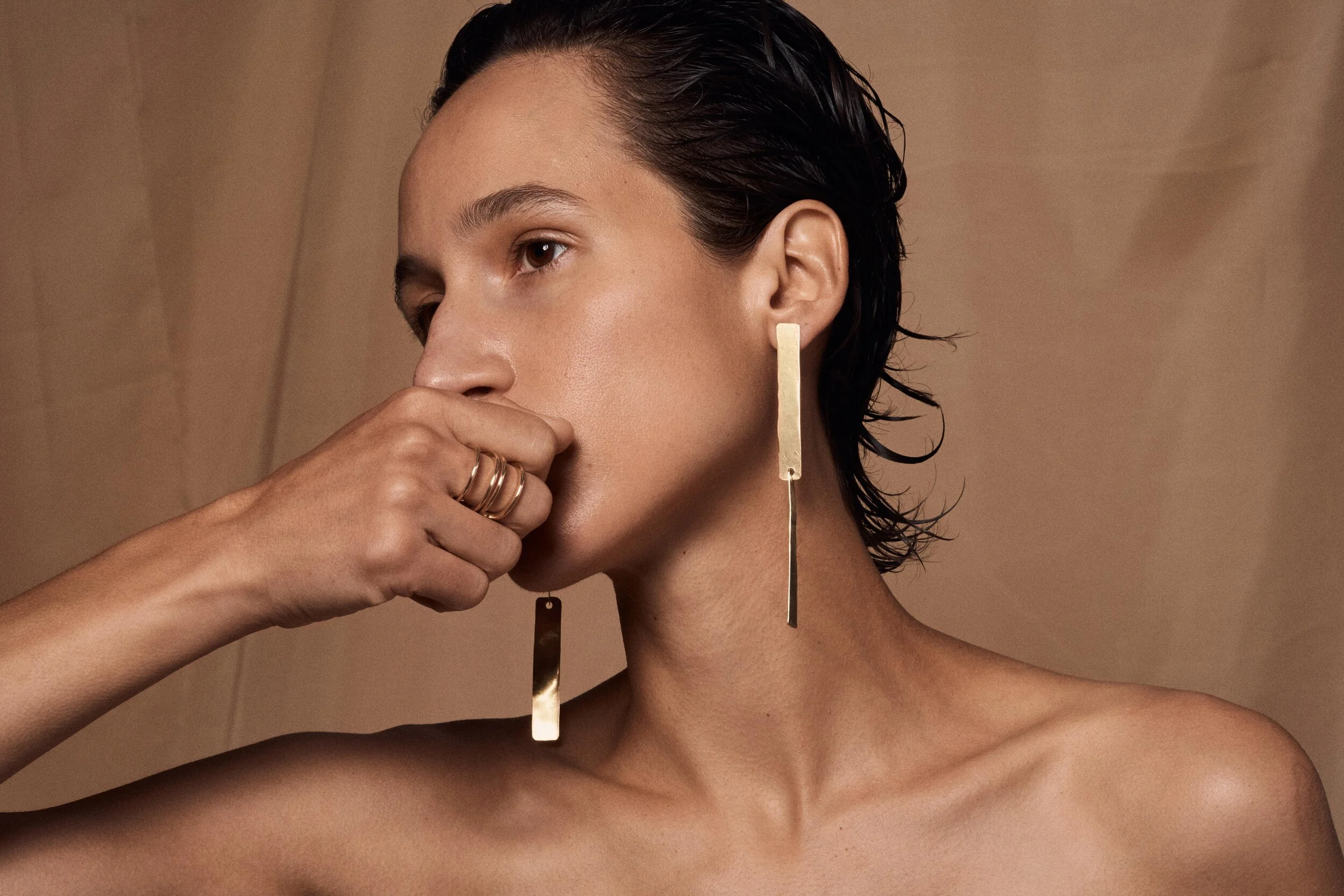 Shop › Lohko Long Earrings Image 1 of 3 Image 2 of 3 Image 3 of 3 Lohko Long Earrings from $465.00 Long, flat jointed earrings, approx 4 inch drop. Delivery Type: In-Stock Pre-Order (ships 3-5 wks) Metal: Sterling Silver Gold Vermeil Get notified by email when this product is in stock. Sign up to receive news and updates. Add To Cart Added! Long, flat jointed earrings, approx 4 inch drop.