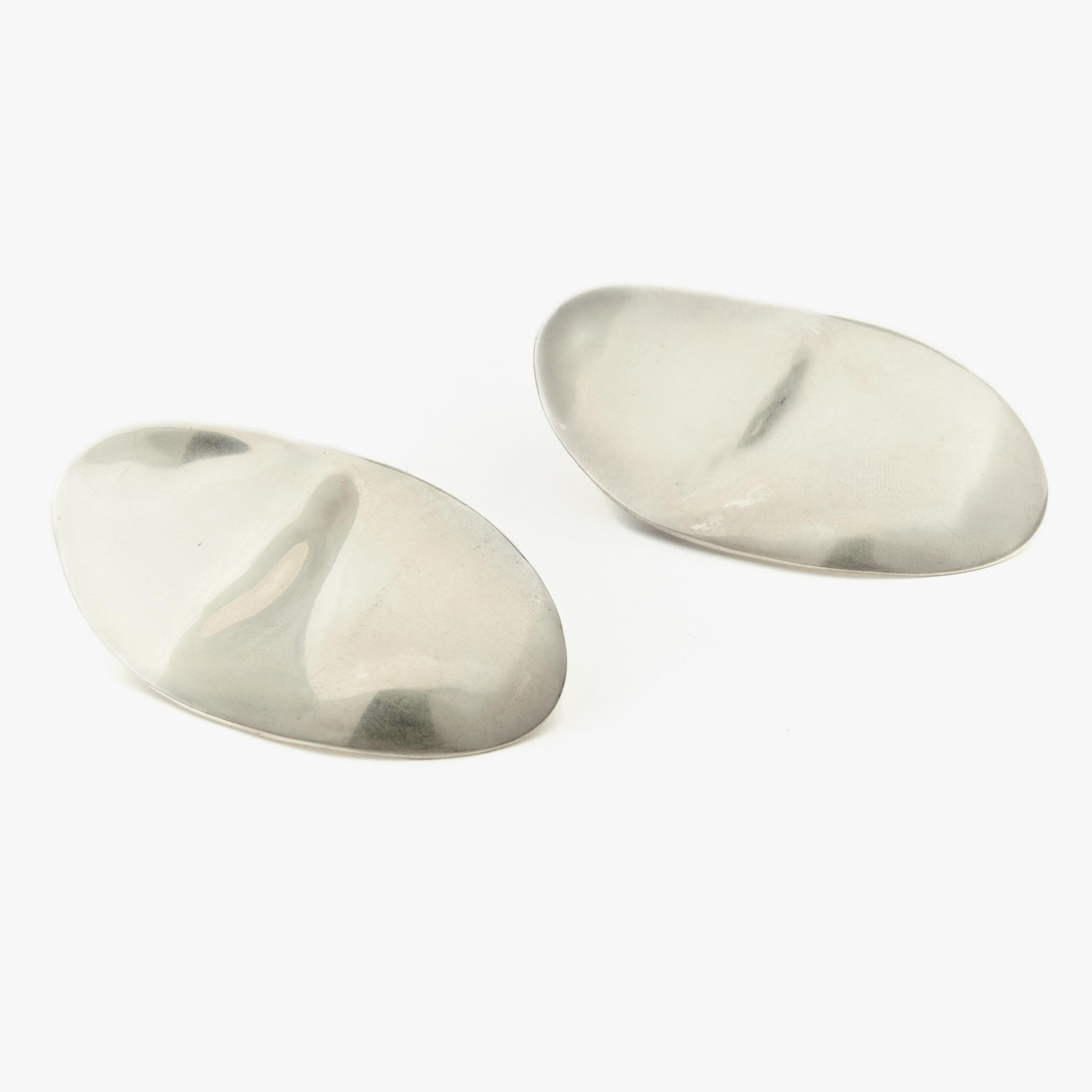 Shop › Miro Earrings Image 1 of 3 Image 2 of 3 Image 3 of 3 Miro Earrings $628.00 sold out Curved slab earrings in sterling silver or brass, approximately 2 1/4 in. long, 1 1/4 wide. Polished finish. Get notified by email when this product is in stock. Sign up to receive news and updates. Sold Out Added! Curved slab earrings in sterling silver or brass, approximately 2 1/4 in. long, 1 1/4 wide. Polished finish.